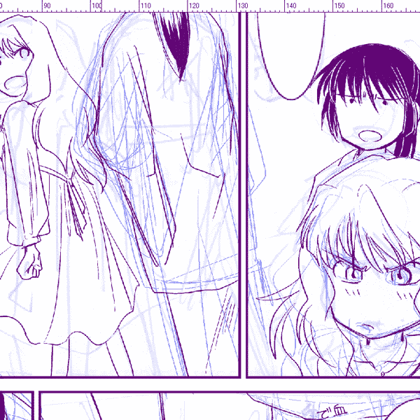 もともとの絵がこういう絵なので、こういうコマばかりだと描きやすいんだがなぁ(アルシェリにならん)。