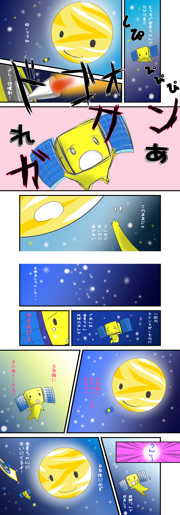 ではでは、ペーパー考案しつつ、たまりまくった家事類を片付けつつ、あかつきペーパークラフト作りつつ、はやぶさプラモそろそろ仕上げつつ(うう、太陽電池パネル裏面配線の直線が綺麗にできなくて止まってたんだい)、ふたござ流星群も楽しみにしつつ、21日の皆既月食も晴れればいいなと思いつつ過ごしたいと思います。